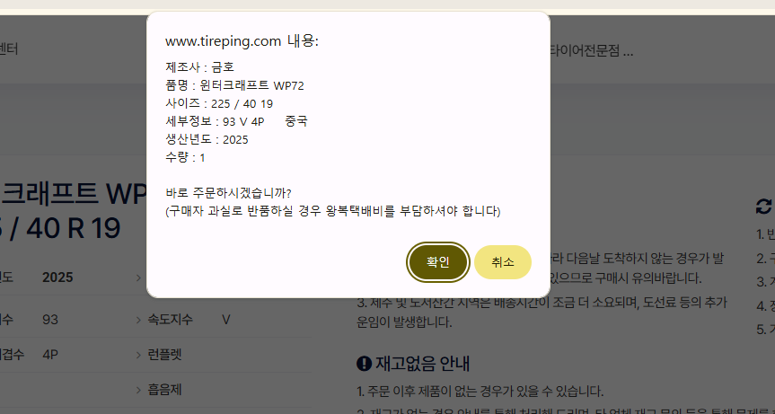 구매점 타이어 구매시 이 부분에
